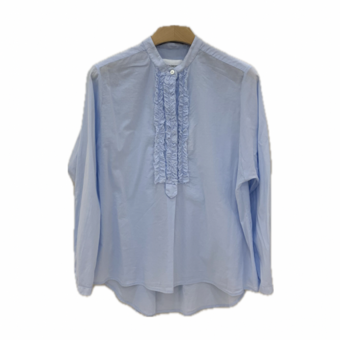 Camicia in denim, dal fit morbido, giro collo, abbottonatura a polo lunga con dettaglio a sciarpina.